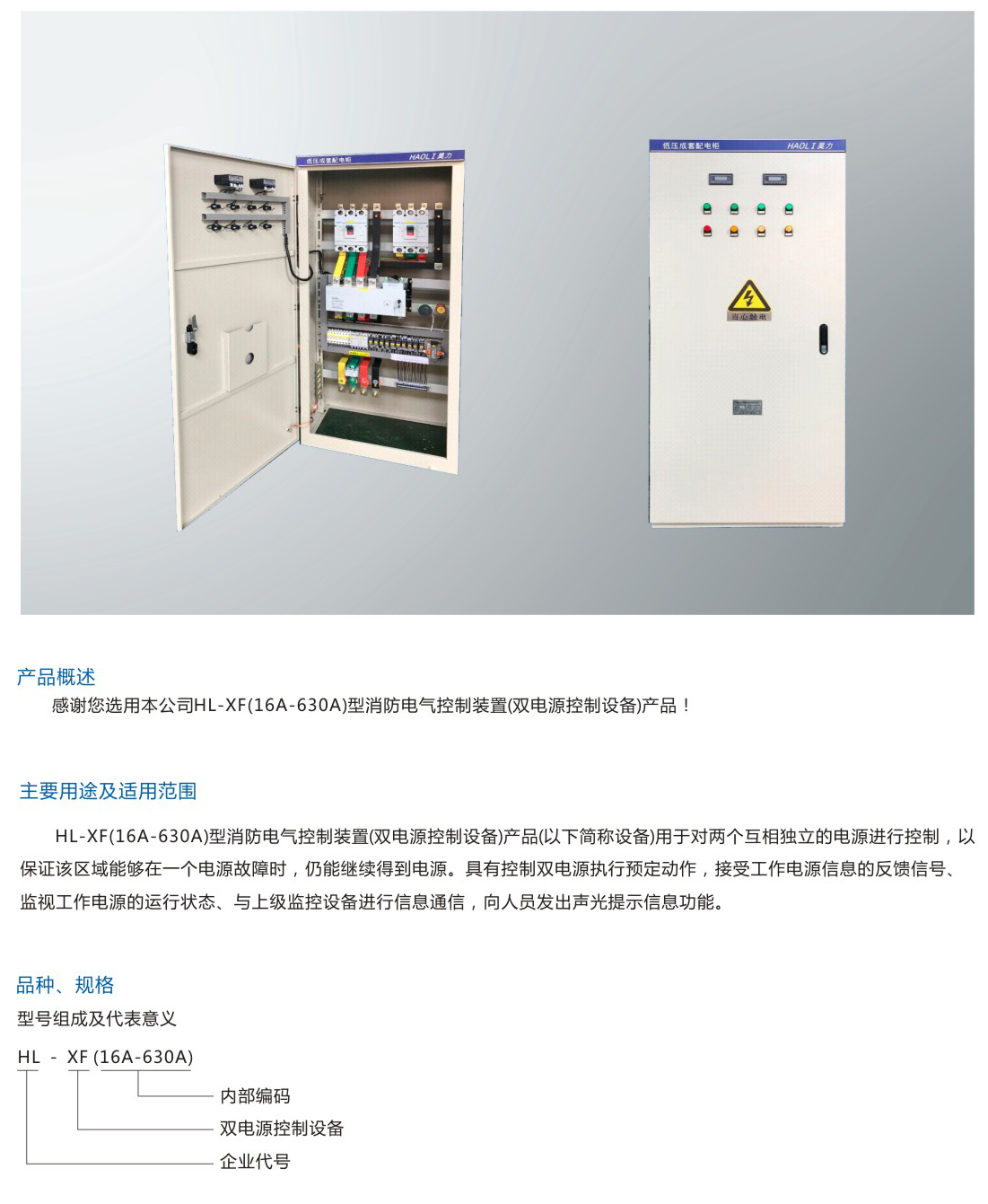 HL-XF(16A-630A)双电源控制设备